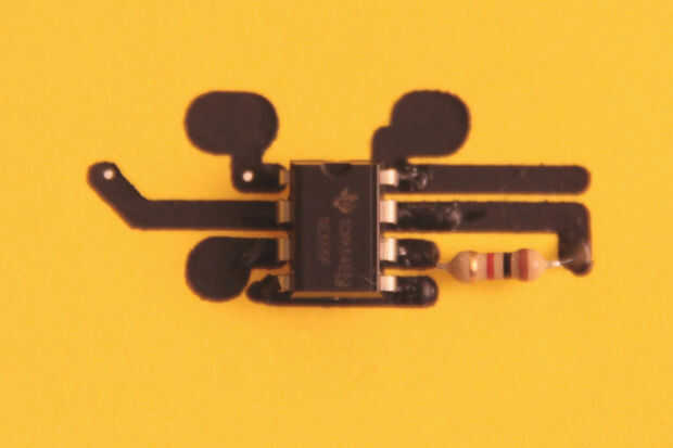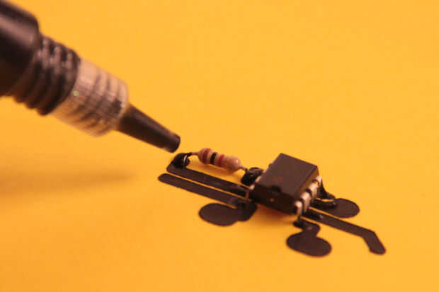 juego de operación DIY con tinta conductora de pintura de desnudo.De una compilación que el día en el espacio de Hacker de San AntonioPartes:Caja pequeña1 LED1 transistor NPN1 resistencia de 390 ohmioscinta eléctricaDesnudo pintura Eelectrically pint