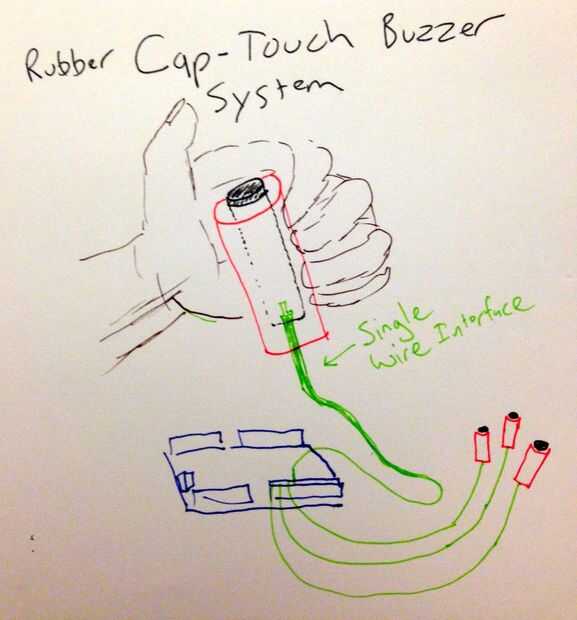 Los pedacitos de goma son divertidos de squeeze y trabajo grande como sensores táctiles capacitivas! Esto lo hace ideal para un concurso de varias persona como dispositivo zumbador. Si usted sigue esta configuración, puede configurar la versión más rápida de un juego del tipo de concurso que he visto. Además si usas gorra-touch, no necesita soldar, añadir resistencias, o ejecutar múltiples hilos como en otros ejemplos: