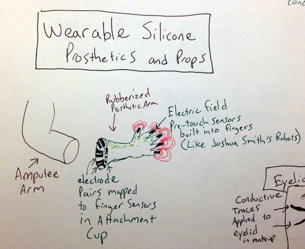 Podría tener algo como una mano de goma recubierto con goma y sensores al tacto capacitivo (como Joshua Smith pre-touch sintiendo lo hace para la robótica), estos sensores pueden ser almohadillas de caucho asignadas al conductor con alta tensión y baja corriente electro-táctil pantalla (p. ej. http://www.ncbi.nlm.nih.gov/pubmed/2026426 ). Se podría imaginar algo parecido a la anguila eléctrica , consiguiendo un más suave, más agradable makerover :)