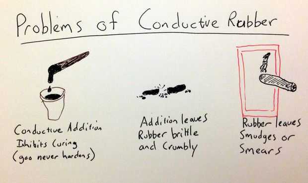 - No de goma como propiedades: la adición hace la goma conductora, pero sacrifica las propiedades del material que engrandecen la silicona, como hinchables, elástico y la flexibilidad. Muchas adiciones (como la técnica del polvo de carbón estándar) pueden dejar la silicona