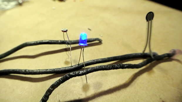 Para obtener la idea básica en todo, he creado un sencillo circuito electrónico casi en su totalidad en caucho.