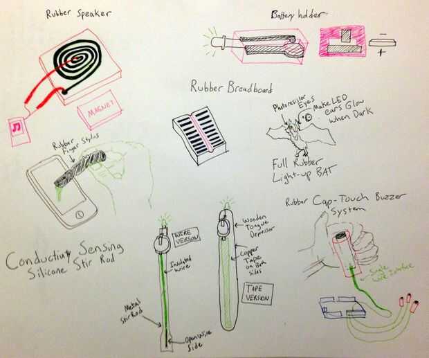 Una cosa fresca sobre esta zona en desarrollo es que tenemos una oportunidad de probar muchas de las grandes ideas que han hecho de personas del mundo del circuito suave (como los diseñadores rad en Kobakant: http://www.kobakant.at/DIY/) en el nuevo contexto de silicona conductora. Muchos de los conceptos estándar de e-textiles servirá esta arena así como: Cómo conectar potencia, conexiones de hard-soft, sensores de diseño. Si buscas una idea de proyecto, vaya a http://www.kobakant.at/DIY/ y tratar de recrear uno de sus proyectos con goma!