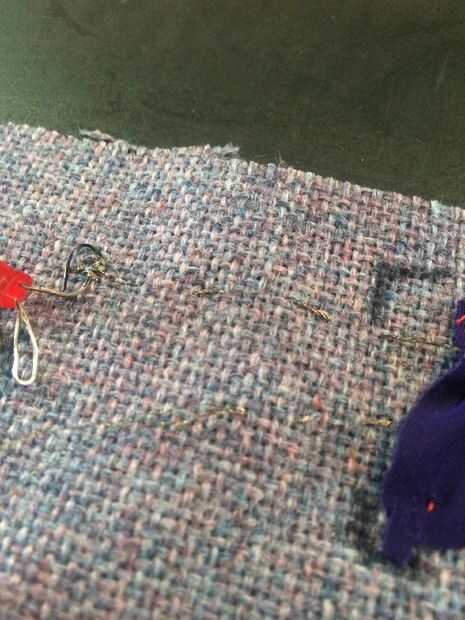 Repita con el segundo hilo de la parte posterior de la cavidad. Nuevamente, asegúrese de no coser el bolsillo de cierre. También asegúrese de que los hilos no se cruzan. Esto corta el circuito.
