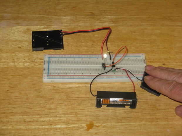 Encender un LED con un LED solar, no era muy impresionante así que fui a un motor de 5 volts el LED ultra brillante y su resistencia y conexión del motor en su lugar.