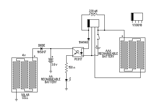 Cuando empecé a experimentar con el IC usé un optoacoplador PC817 para conectar los circuitos solar a un LED más potente. El IC solar continuamente desencadenar y enciende el LED hasta que he añadido un diodo de conmutación 1N4148 para el optoacoplador de entrada. Ahora el IC solar de 1,2 voltios enciende el LED más potente un apagado limpio.