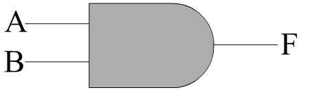 El primer tipo de puerta que veremos es la puerta y. El símbolo de circuito para una puerta de dos entradas y es lo curioso con forma de bala. Los terminales marcan A y B son las entradas, y la marcada una F es la salida.