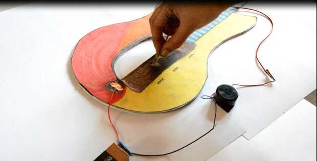 Conectamos + final de ve de la batería con la parte sombreada con la ayuda de un cobre cinta, - ve de la batería y el timbre fueron Unido togather, mientras + ve del zumbador se unió con un extremo del alambre de cocodrilo, y cuando te toque el otro extremo con el área sombreada, haz sonidos basados en la intensidad... !!