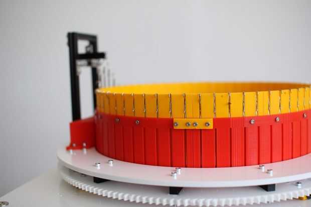 Utilice la entrada vacía para colocar la superficie superior de la Knitic Circular. Hacer las agujas para entrar en la montaña, conectar superior superficial y gran equipo y coloque el último interno con las agujas. Ahora Asegúrese de que las agujas son movimiento y después de la forma de la montaña.