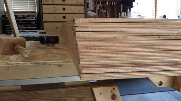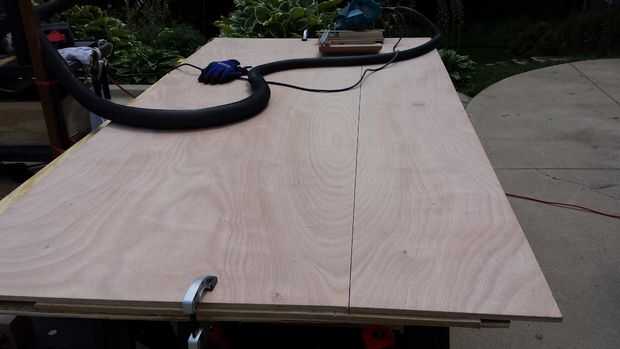 Medir la distancia entre la hoja y la guía, conectar la aspiradora de taller y rasgar lejos. Mi primer 4 hojas de madera contrachapada de ½" fue Ripeado en tres tiras de 14.5" plus 4 ¼" izquierda overs son todos idénticos, con ningún desgarro desagradable hacia fuera. Vacío funcionó muy bien con prácticamente sin polvo. Terminé en 30 minutos.