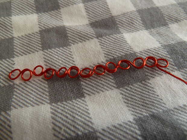 Puede medir el anillo envolviendo alrededor del objeto redondo. Cuando el aro ha alcanzado el tamaño adecuado, el círculo va a tocar uno al otro. La imagen muestra mío cuando tenía 13 círculos, necesita agregar uno más.