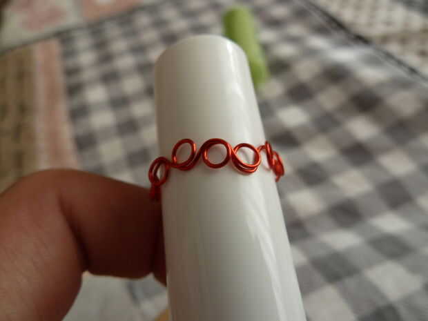 Puede hacer el anillo redondo poniéndolo sobre el objeto redondo y aplastando contra los lados del objeto.