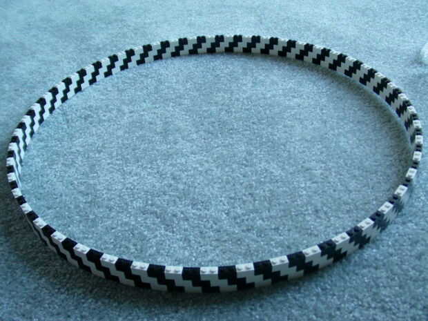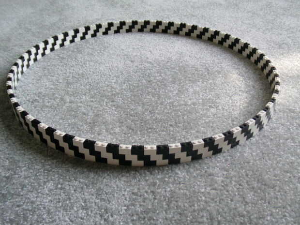 Este círculo está hecho de ladrillos Lego rectangulares estándar. Cuando suficientes ladrillos se apilan juntos empiezan a doblarse un poco y eventualmente puede terminar un círculo completo.