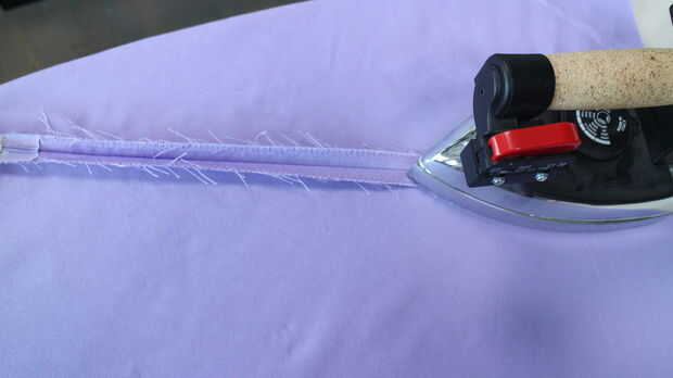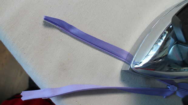 -Abrir costura y presiona con la plancha. Prender y virar hacia abajo de la cinta de la cremallera en la parte inferior para proteger la cola en la parte inferior.