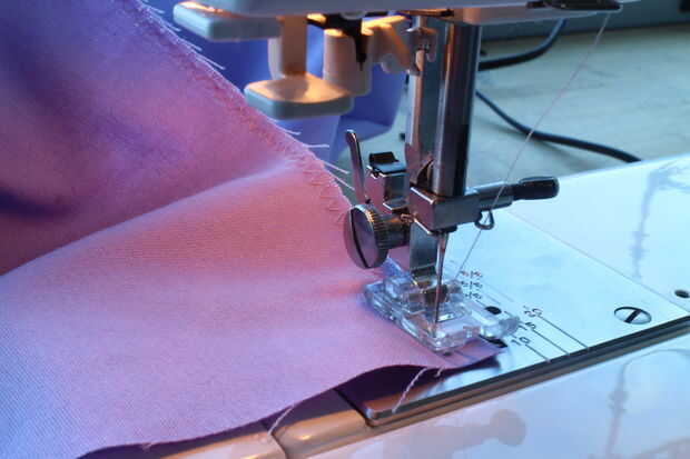 -Para asegurarse de que sus bordes cortados crudos no fray le puede les overlock o utilice la puntada de zig-zag en una máquina de coser del hogar. Mi overlock estudio reparación, usé un 1/4" zig-zag para ir alrededor de todos los bordes crudos en las piezas de falda y bolsillo.