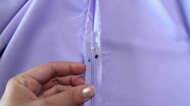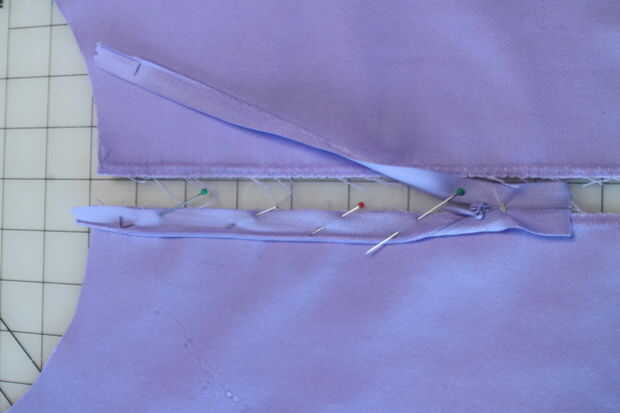 -Repetir en el otro lado de la costura posterior central, perno primero para asegurarse de que la cintura se coincide en la parte superior cuando se cierra la cremallera.