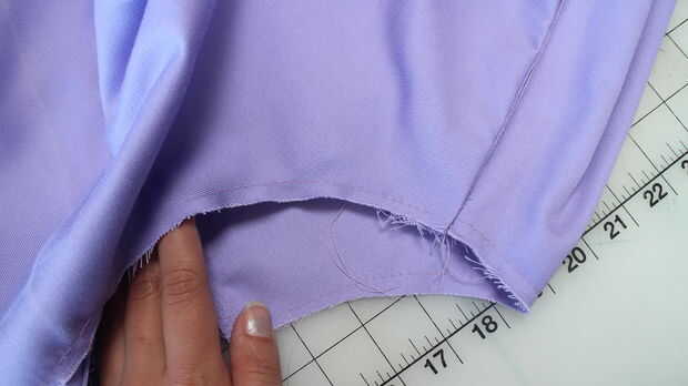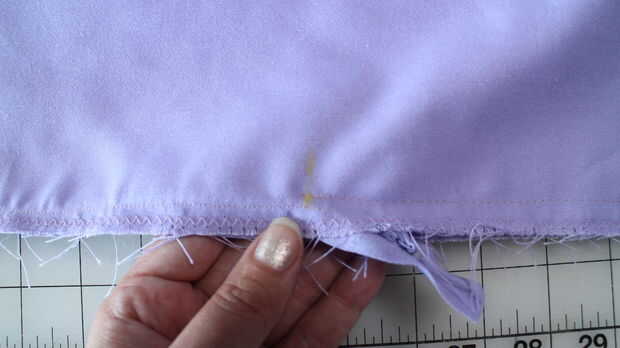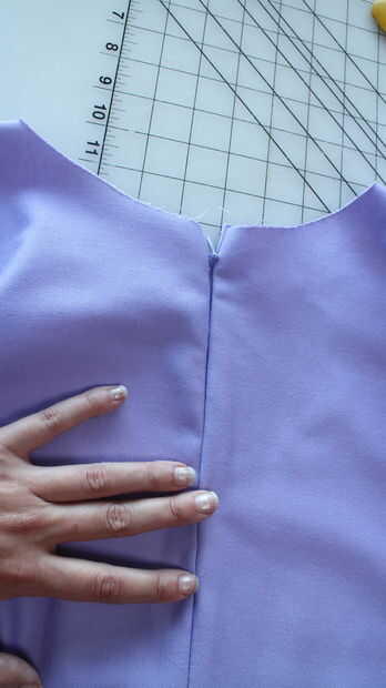 -Una vez que la cremallera se cose en, zip para arriba y te darás cuenta que se extrae la cola de la cremallera en la parte inferior, tire hacia fuera del camino y perno encima de la costura posterior central.