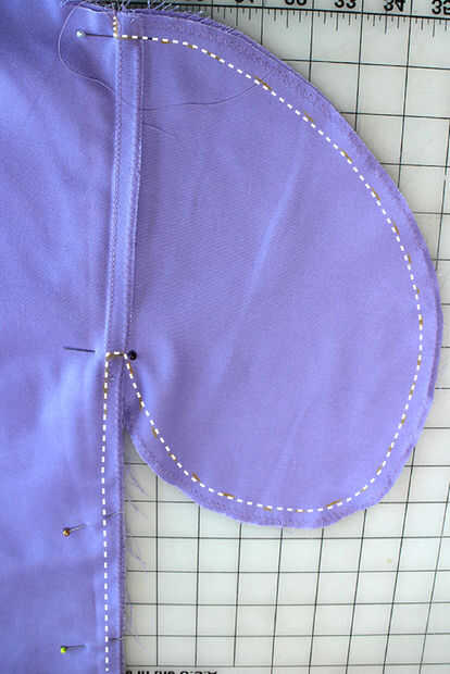 -Una vez hecho esto a la parte delantera y la espalda, pin juntos frente a la espalda, derecho contra derecho y coser. 5" abajo de la cintura, bolsillo y abajo de la costura lateral.