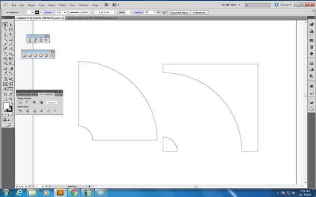 Utilice la herramienta Rectángulo para dividir los círculos en la mitad de 2 costuras, en cuartos de 4 costuras, etc.. Seleccione todas las formas y usar la herramienta Recortar en el menú de pathfinder. Mientras que las formas nuevas son aún seleccionado comprobar que todavía tienen un contorno negro. Haga clic en las formas y seleccionar Desagrupar. Separar la forma de cuña que se convertirá en el patrón de falda y elimine el resto.