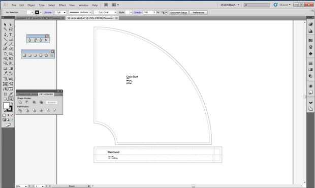Utilice la herramienta Rectángulo para dibujar un cuadro con una altura y anchura la misma como la longitud de la cintura y ancho de la pretina de la hoja de cálculo. En este punto usted tiene un patrón digital completado, las líneas continuas son las líneas de corte y como su cosido juntos utilizando la costura correcta prestación por habrá una costumbre equipado patrón de falda. También puede utilizar la herramienta de texto para etiquetar las piezas, la herramienta de desvío de caminos para dibujar líneas de puntada y añadir muescas con la herramienta polígono.