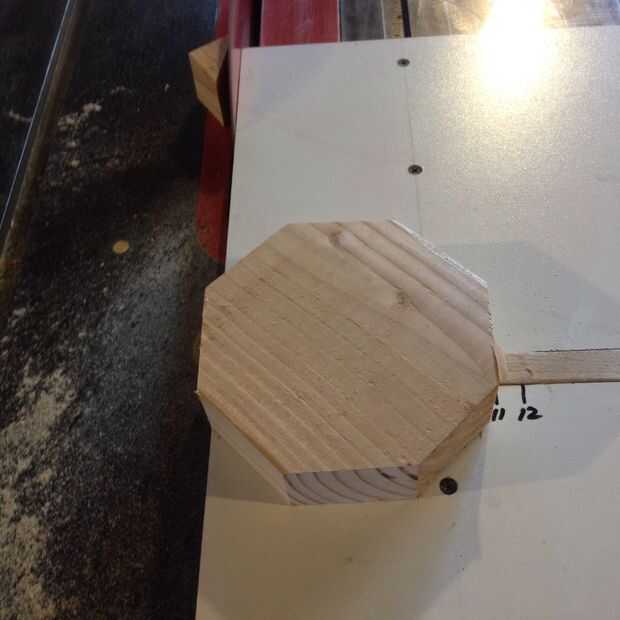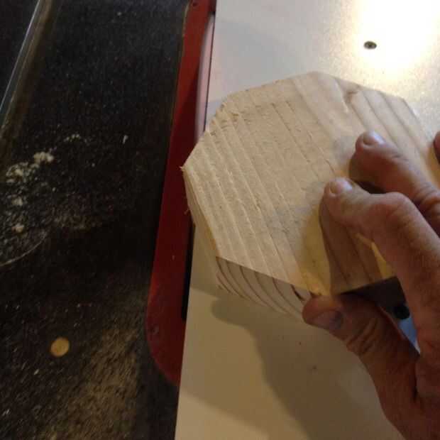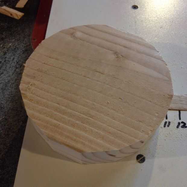 Primero corte las esquinas para hacer un octágono. Luego cortar las esquinas otra vez para hacer un hexadecagon (realmente! Un objeto cara 16). Desde aquí puede empujar el bloque hasta la hoja en pequeños bocados y gírelo para redondear hacia fuera. Incluso puede Agregar adornos ajustando la altura de la lámina.