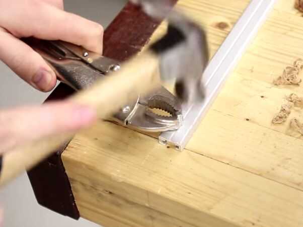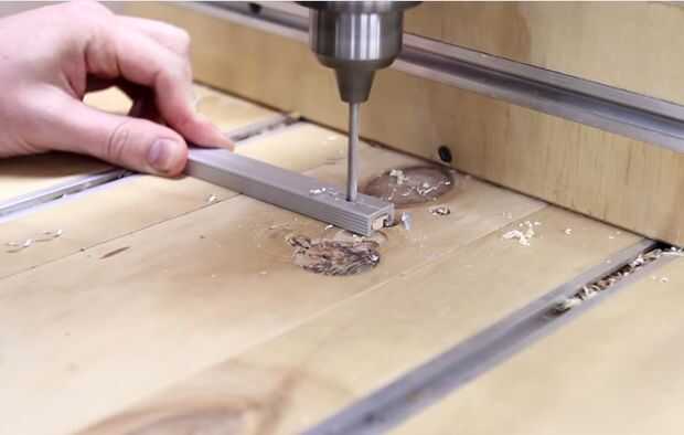 Perfore un agujero demasiado pequeño (un poco) en la pista en forma de t, aproximadamente 25mm de un borde.