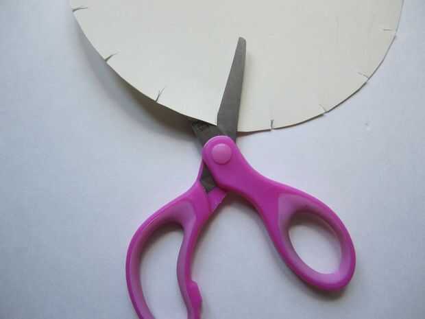 4. Cortar cada lápiz de la marca para hacer muescas alrededor del círculo. Las muescas se sostiene el hilo en su lugar.