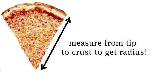 Agarra a su auto una rebanada de pizza y medir con una regla la longitud de la rebanada de pizza de punta a la corteza.