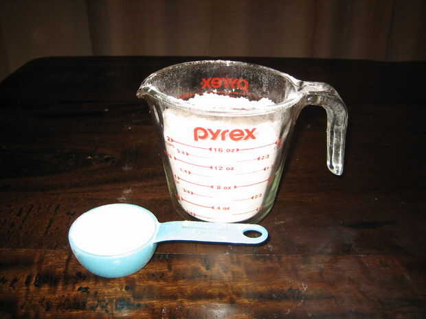 4. Vierta la harina de 1/4 c en una capacidad de c 1/3 taza de medición. Levante con cuidado suficiente harina de 2 c en la Copa más pequeña para hacer el c de 1/3 completo.