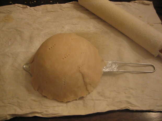 15. forma de la masa muy bien al tamiz. Si la masa se extiende sobre el lado, solo recortar los bordes. Tendrá que ser algunas veces más en los bordes para que se ajuste bien.