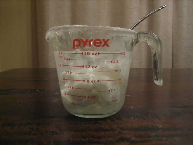 5. poner la c 1/3 en un tazón pequeño. Preparar la capacidad de c 1 vaso medidor con 1 taza de agua con hielo.