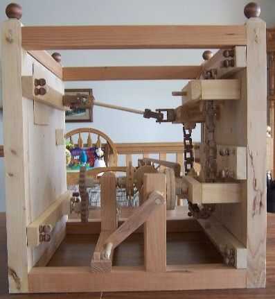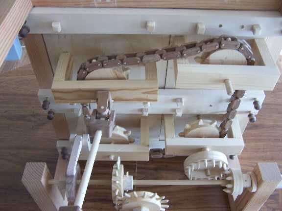 Sincronicidad es un reloj de pared de péndulo único engranaje de madera expuesta, con una combinación de la vieja y nueva tecnología.Muchos relojes de engranaje de madera son conducidos por pesos. Estos relojes necesitan ser herida periódicamente, ta