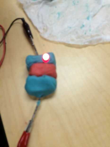 A fin de que las luces para trabajar tiene que haber espacio entre cada una de las masas conductoras. Si desea que toda la masa tocando, necesita han aislado masa entre ellos. Esto es porque la electricidad necesita fluya a través de la masa. Hicimos un coche y un cangrejo como ejemplos. La masa de rojo es la masa aislante y la masa azul es conductor.