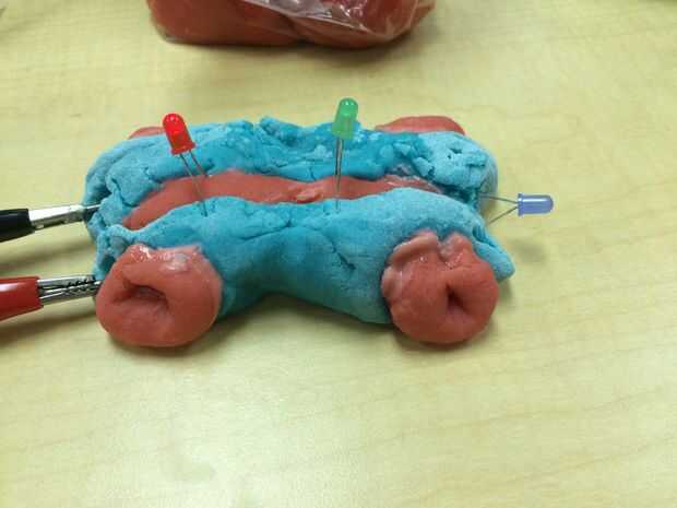 En primer lugar hacer su juego masa.Si es necesario encontrar una receta en línea y asegúrese de que es masa conductora.http://courseweb.STTHOMAS.edu/apthomas/SquishyCirc...También vas a tener que hacer NON-conductive doh.Teñimos nuestro conductor do