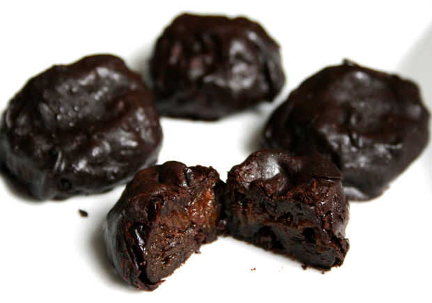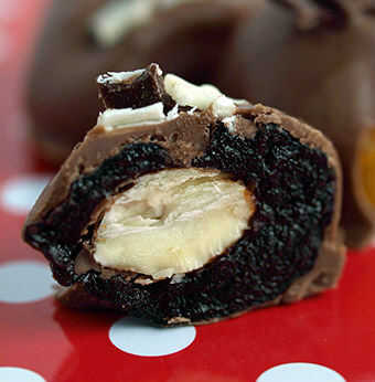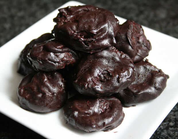 Una ciruela en el chocolate es un manjar típico polaco. Puede incluirse una almendra tostada en el centro de la confección y nuts machacado se pueden utilizar como topping como bueno, pero es que quería hacer mi propia versión de él utilizando ingredientes locales porque no vivo en Polonia.