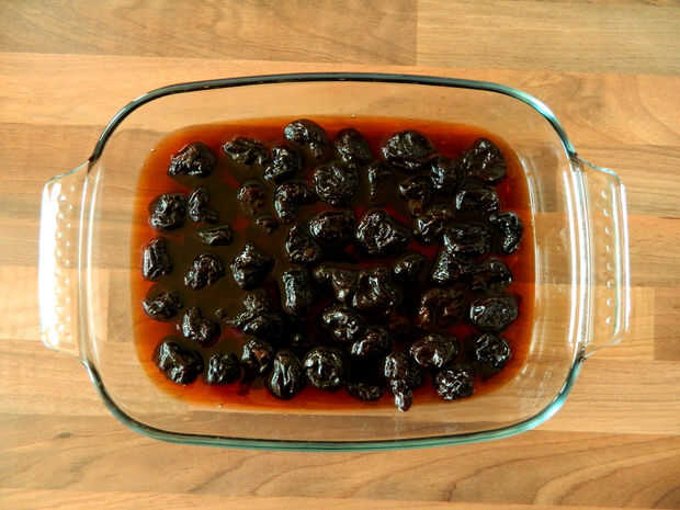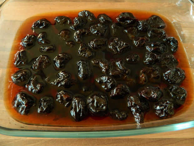 Poner las ciruelas en un bol o cacerola plana y cubrir las ciruelas con el coñac.