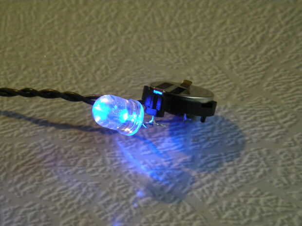 Cerebro de mi calabaza es un circuito simple formado por un LED azul, una batería de CR3202 y un interruptor de láminas. Usted puede preferir dejar de lado el interruptor de láminas, pero facilita el proceso de preservación criogénica, practicaremos más adelante. Usted puede encontrar ayuda para difundir tu LED.