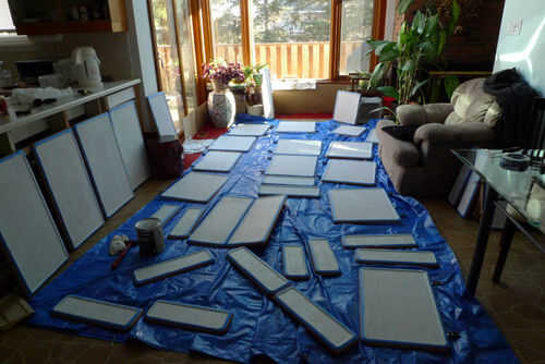 Foto 1 y 2: eliminar todas las puertas de gabinete Quitar todos los mangos Máscara madera fronteras. (Retirado y lijar las puertas con los desaparecidos de mimbre)