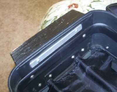Utilicé una pieza de aluminio dentro de la maleta y tornillos de metal para mantener la extensión de la ayuda en lugar. Hasta ahora, nadie de la TSA ha dejado una nota que él o ella miraba dentro para ver lo que podría ser el metal.