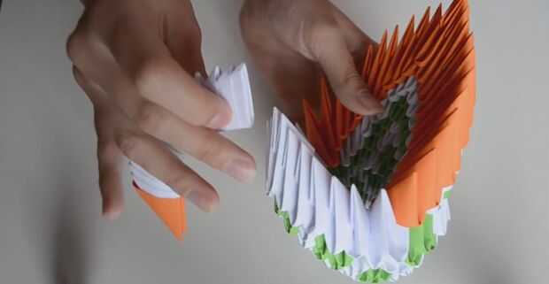 Cisne de origami.Potes de flor de Quillied.Paso 1:Papiroflexia cisne: de 181 unidades modulares.Materiales necesarios:Hojas de tamaño A4-6.Marcador rojo.Dobla la hoja de tamaño A4 en 16.cortar 16 piezas.Paso 2: cada una de las 16 piezas cortado en do