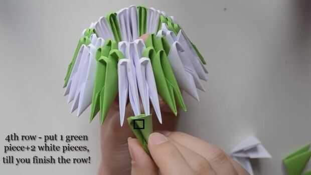 Cisne de origami.Potes de flor de Quillied.Paso 1:Papiroflexia cisne: de 181 unidades modulares.Materiales necesarios:Hojas de tamaño A4-6.Marcador rojo.Dobla la hoja de tamaño A4 en 16.cortar 16 piezas.Paso 2: cada una de las 16 piezas cortado en do
