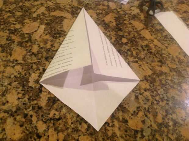 2. hacer lo mismo con la otra esquina. Usted debe terminar con un papel que parece un cometa.