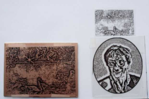 Yo no he filmado los pasos de exposición de la placa a radiación ultravioleta y grabado perchlorure