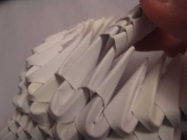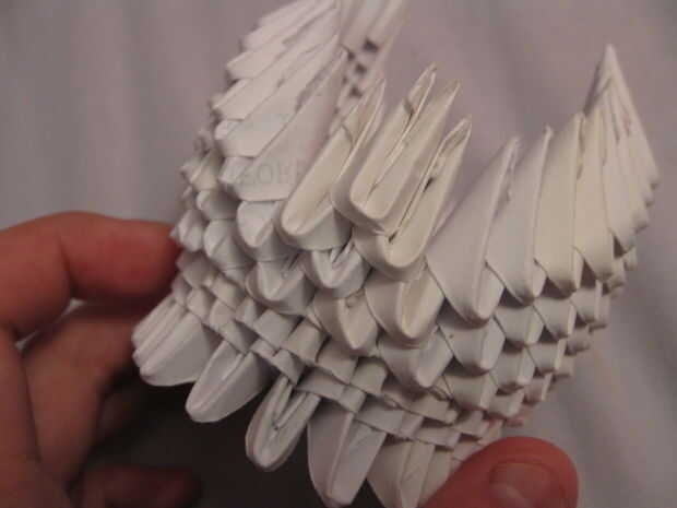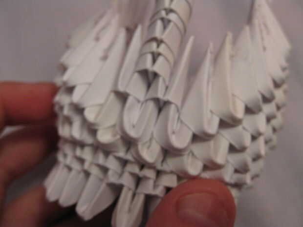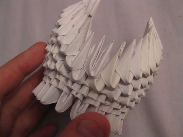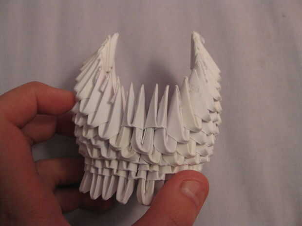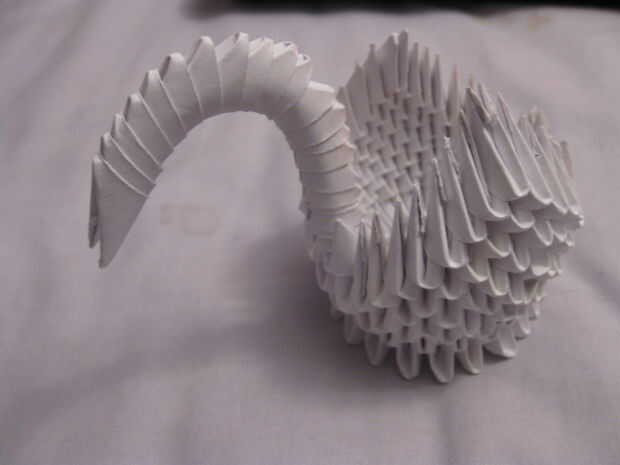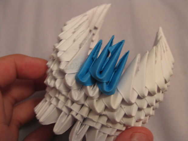 Cuando estaban haciendo las alas anteriores, lo dejó después de las 8 piezas adicionales. Esto significa que todavía hay una brecha en el otro lado! La vuelta el cisne para ir a este lado. Dos piezas en la parte superior los cuatro puntos y añadir una pieza en la parte superior para hacer la cola.