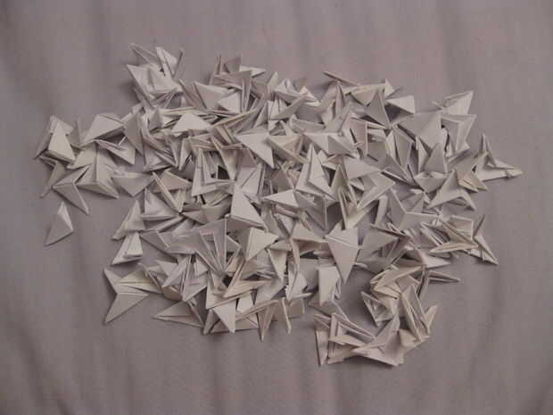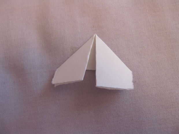 Ahora debe tener una pieza en forma de Pentágono de papel, con los dos lados en el centro.