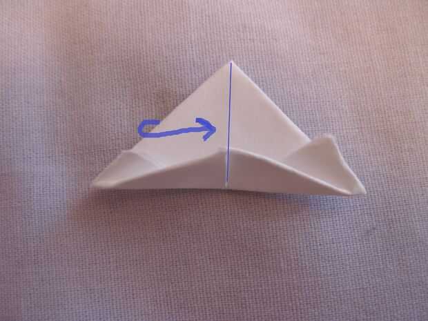 Una línea azul representa dónde doblar. Las flechas te apuntan en la dirección del pliegue.