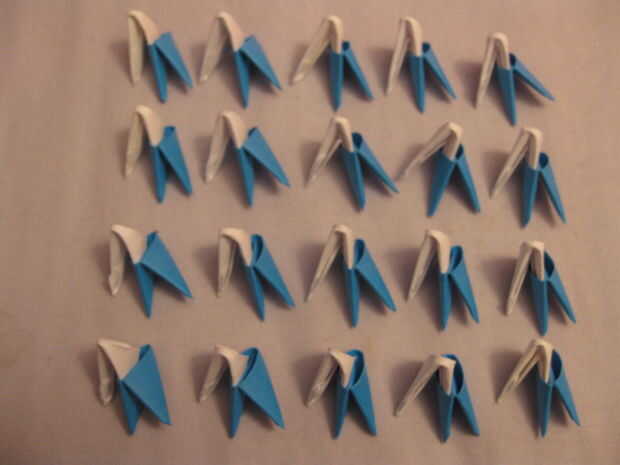 Para empezar, vamos a hacer veinte pares de piezas. Porque se trata de la primera capa, vamos a invertir las piezas para crear un «stand» cuando el cisne se ha completado. Así, en lugar de ellos del mismo modo, será entregar una de las piezas.