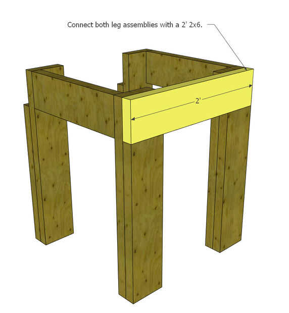 Ahora, cortar 24" pieza de 2 x 6 y bofetada termina algún adhesivo en las"muescas"en la parte superior de las Asambleas de 2 pierna.  Coloque el 24" 2 x 6 y atornillarlo.