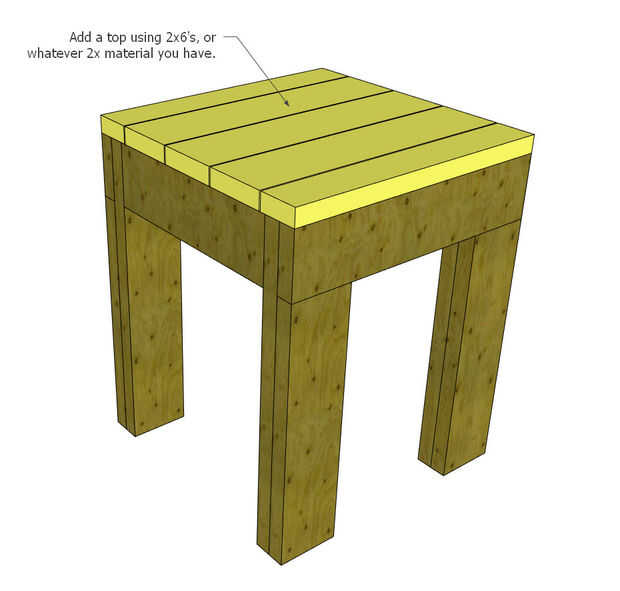 La última parte de la construcción de soporte es que la parte superior.  Sólo tiene que utilizar cualquier material de 2 x tienes, corte a 24" longitud y espacio de manera uniforme.  Podría hacer una proyección si lo desea, pero preferí la mirada limpia de lo que descarga.  Recuerde poner un espacio entre tablas para dar agua de lluvia un lugar para drenar.