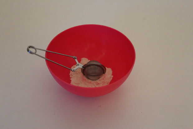 La diversión de harina (trigo) es que coge la escala de la nieve. Sal fina también hace el truco de una distancia, pero se pone a granulada de cerca. Para igualmente distribuir la harina, el uso de un tamiz. Sacúdalo un poco (verticalmente) para obtener la harina por el tamiz. No importa que se derrame por los bordes, bien llegar a en el paso siguiente.