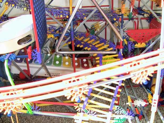 ¡ Hola! Este es el Clamor, mi máquina de la bola de K'nex musical. Es una entrada en el hacer que se mueva del concurso, que considere la votación. Incluye campanas, tambores, un triángulo y otros elementos ruidosos. La mejor manera de experimentar la máquina es ver el video. 2 ascensores, 5 caminos.